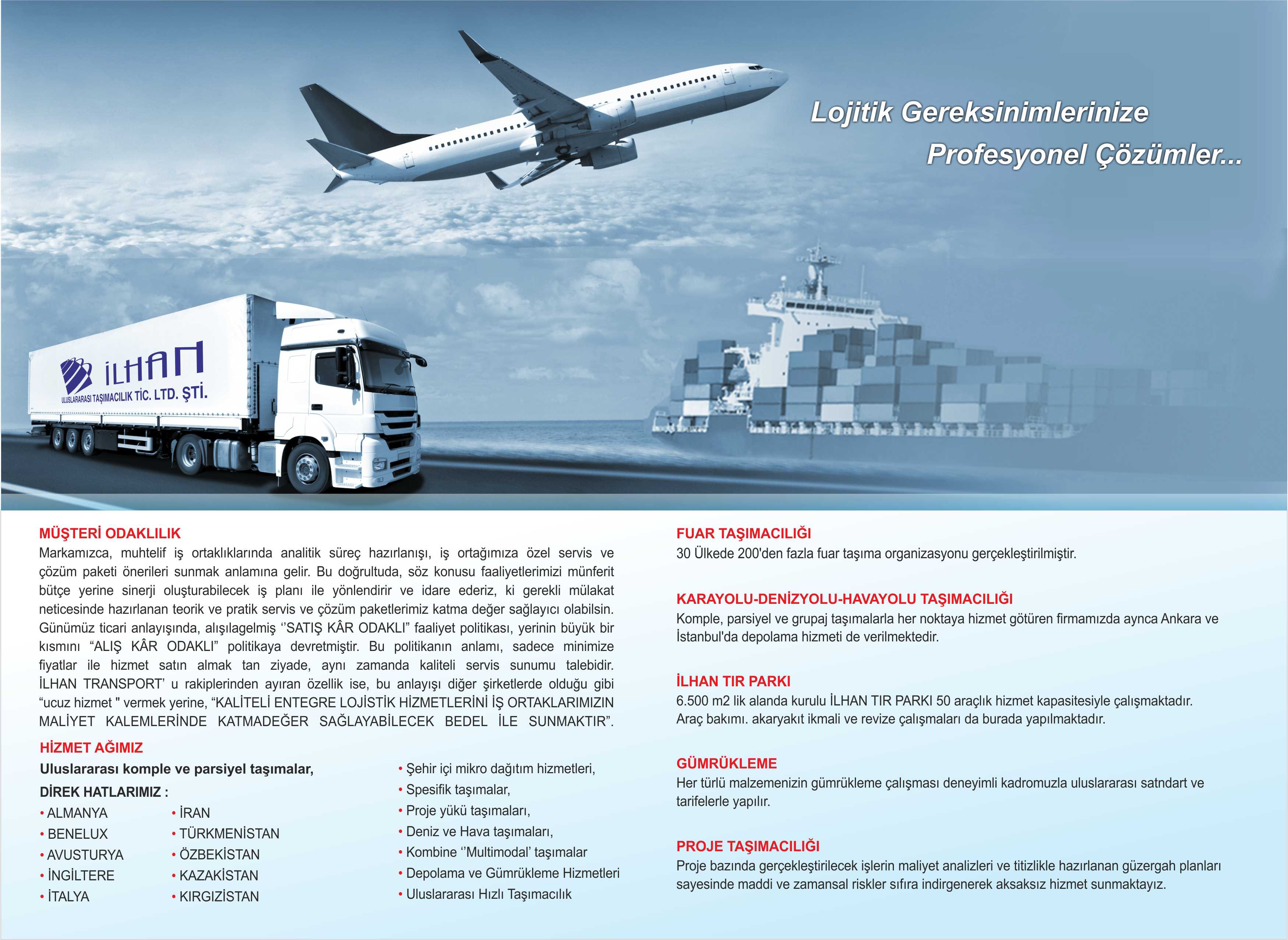 Ankara’da bulunan 1.000m²lik kapalı deposu ile malzemelerinizi nakliye öncesi veya sonrası depolama imkanına da sahiptir. Ayrıca İstanbulda 600 m2 lik yeni depomuzda hizmete girmiş olup depolarımızda hertürlü paletleme şilingleme ve askılı depo hizmeti verebilmekteyiz.